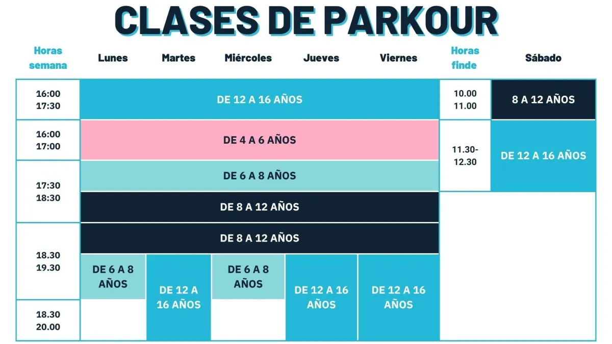 Estas clases de Parkour son recomendadas para personas de todas las edades y niveles.